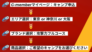下記ボタンより会員登録を行っていただき、マイページにログイン後、メニュー:キャンプ申込よりお申込ください。