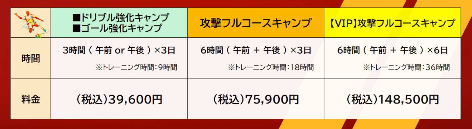 【ドリブル強化キャンプ ・ ゴール強化キャンプ|プラン】